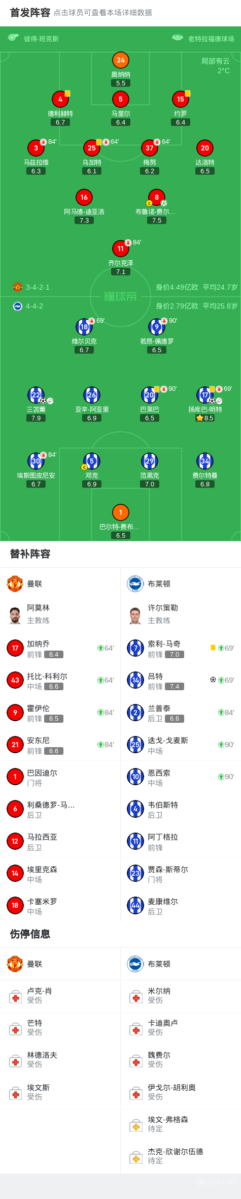 下半场,曼联全队怀着追平比分的决心再度出战。然而,令人扼腕的是,曼联似乎在神秘力量的阻挠下,始终无法将比分扳平。在一次进球被VAR判罚无效后,曼联球员情绪开始有所波动,团结力量似乎受到了一定的冲击。而布莱顿则趁曼联失落之际,再度凭借明特和吕特的进球将比分扩大为1-3。